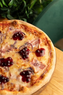 sos pomidorowy, mozzarella, boczek, cebula, taleggio D.O.P., żurawina