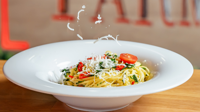 oliwa/czosnek/pietruszka/chili/pomidorki cherry/grana padano D.O.P. | 300g