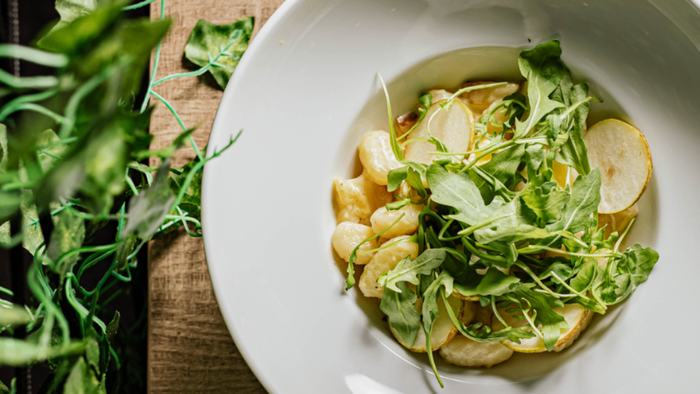 gnocchi/orzech włoski/gorgonzola D.O.P./sos śmietanowy/gruszka/rukola/cebula/czosnek | 400g