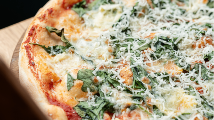 pomidory pelati/mozzarella/szpinak/camembert/grana padano D.O.P.