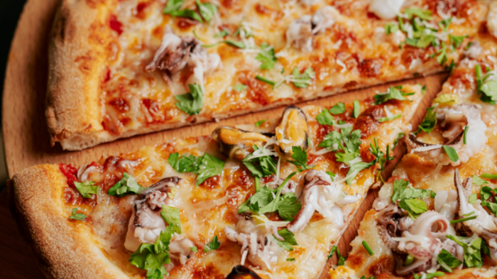pomidory pelati/mozzarella/owoce morza/czosnek/grana padano D.O.P./pietruszka