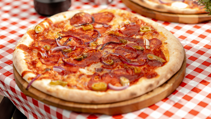 pomidory pelati/mozzarellaspianata piccante/cebula/jalapeno/sos piri piri/tabasco/pieprz