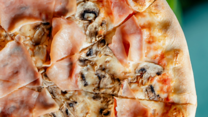 pomidory pelati/mozzarella/włoska szynka gotowana cotto/pieczarki